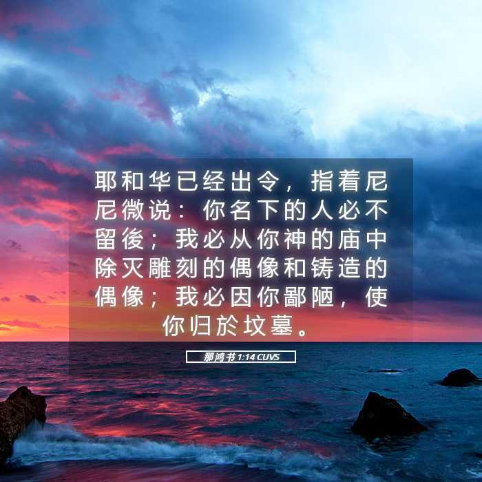 尼尼微啊!耶和华已经向你下了命令:你的名字必不再传于后世;我必从你的神庙中,除掉雕刻和铸造的偶像;我必为你预备坟墓,因为你没有存在的价值。( 那鸿书 1:14 新译本 )
