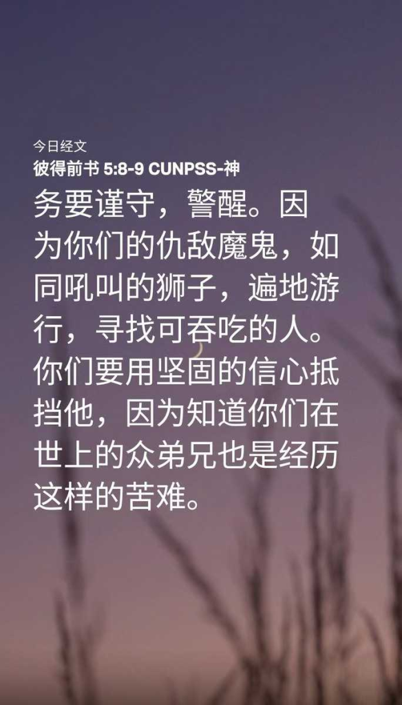 你们要谨慎,要警醒。你们的仇敌魔鬼就像咆哮的狮子走来走去,寻找可吞吃的人。 ( 彼得前书 5:8 标准译本 )