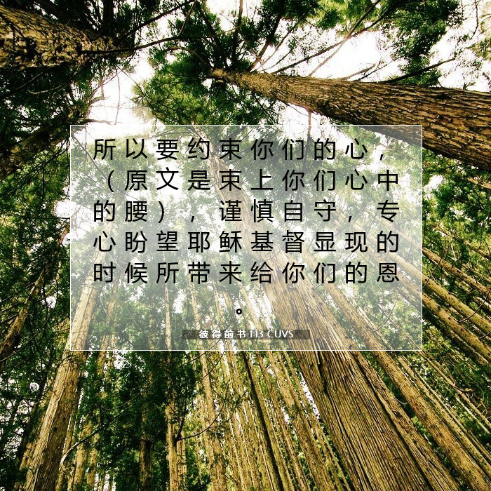 因此,你们要约束自己的意念,要谨慎,要把盼望完全寄托在耶稣基督显现时带给你们的恩典上。 ( 彼得前书 1:13 标准译本 )