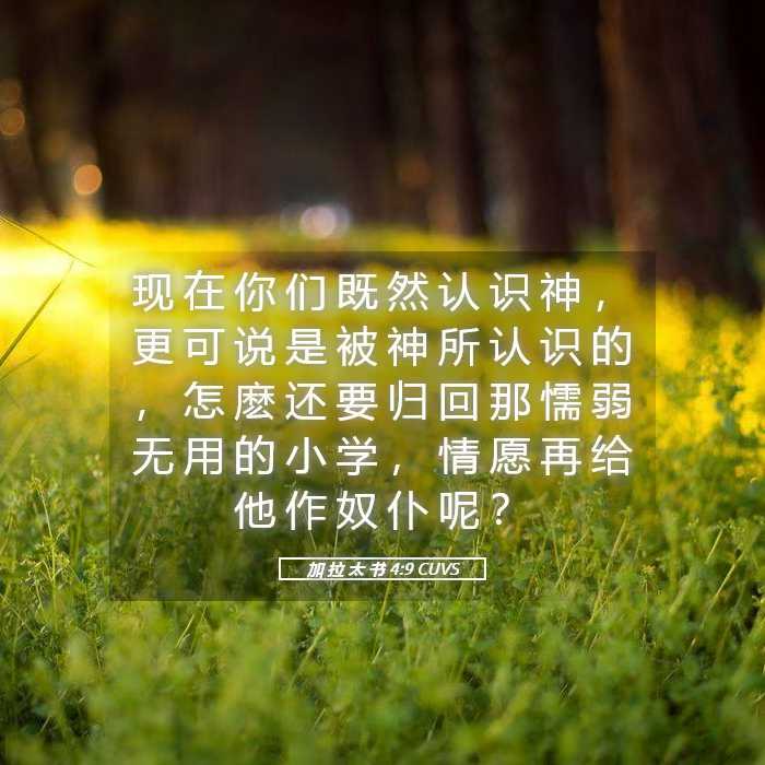 但如今,你们认识了神——不过更要说,被神所认识——怎么能再回到那无能、无用的原则里去呢?你们愿意再重新做它们的奴仆吗? ( 加拉太书 4:9 标准译本 )