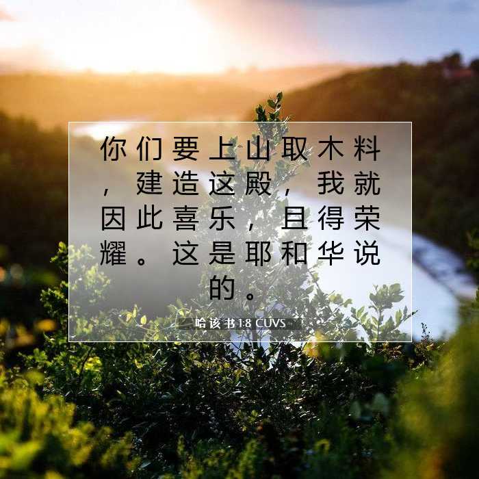 你们要上山运来木材,建造这殿宇,我就因此喜悦,并得尊荣。这是耶和华说的。