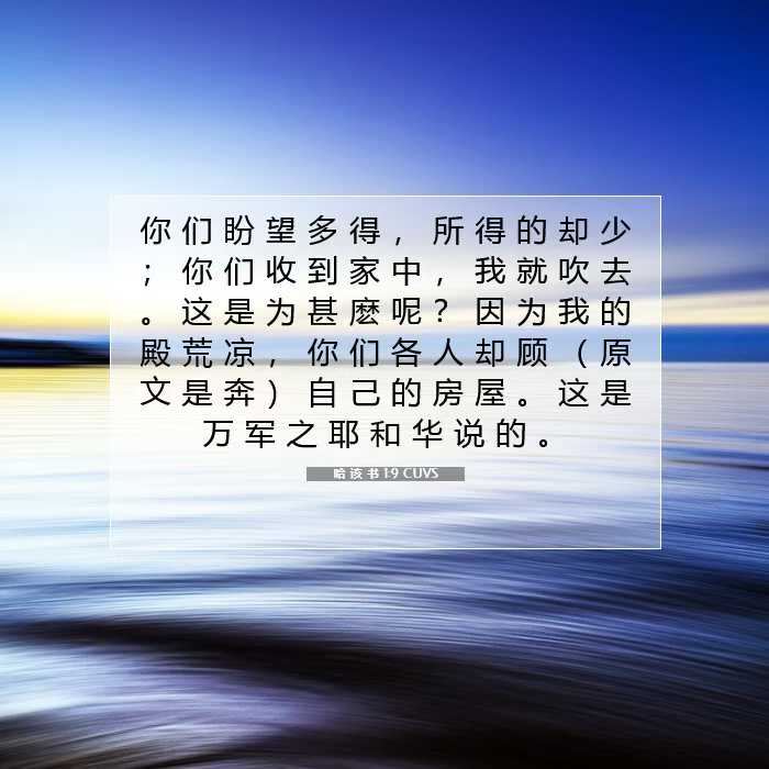 你们盼望的多,看哪,却收的少。你们收到屋里的,我却把它吹走。为什么呢?因为我的殿宇荒废,你们却为各自的房屋奔忙。这是万军之耶和华的宣告。
