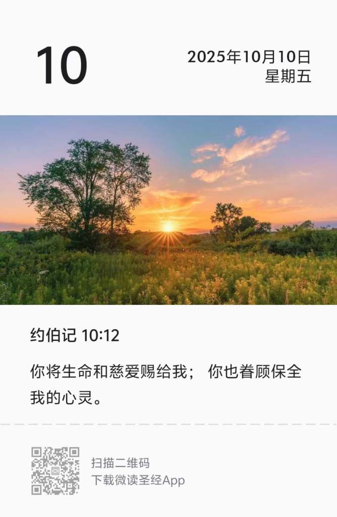 你赐我生命,又向我施慈爱,你的眷顾保守我的心灵。 (约伯记 10:12 新译本)