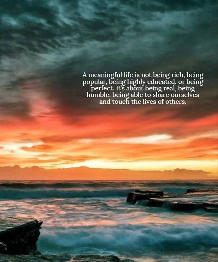 一个有意义的生命不是富有,不是如何受欢迎,不是受过高等教育,也不是追求完美。它是关乎真实,谦卑,能够分享我们自己所拥有的并触及他人的生活。