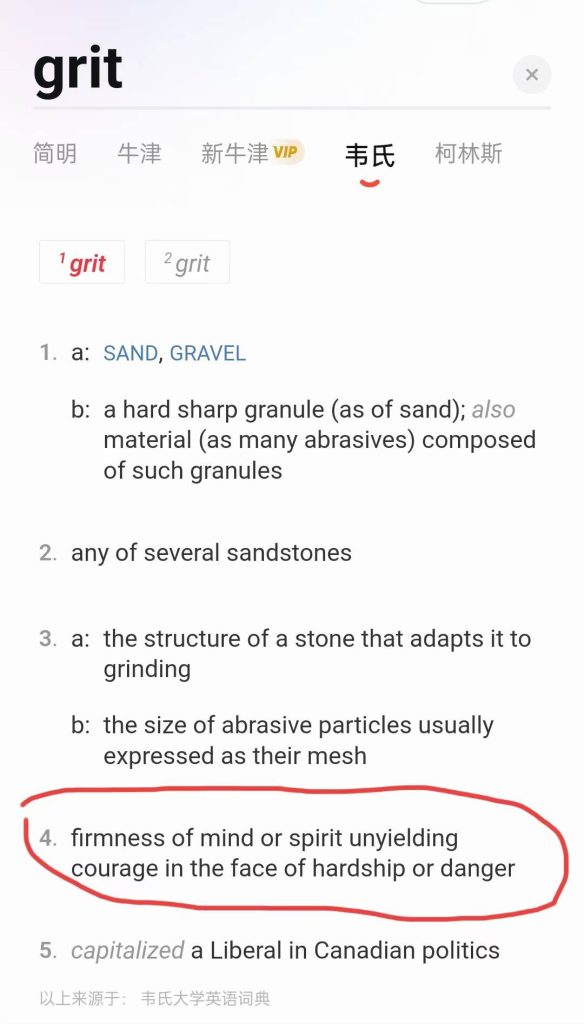 “毅力,是对长远目标的激情与坚持,是能够日复一日的奋斗直到实现梦想。毅力是把生活当作一场马拉松,而不是短跑。”