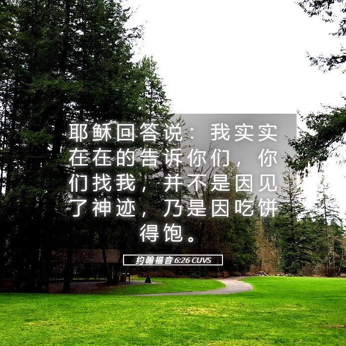 耶稣回答说:“我确确实实地告诉你们:你们找我,并不是因为看见了神迹,而是因为你们吃饼吃饱了。( 约翰福音 6:26 标准译本 )
