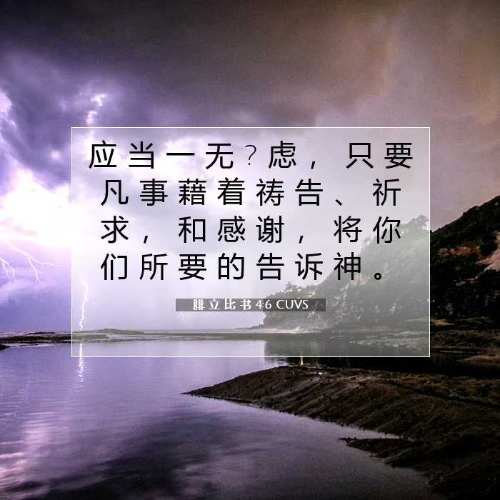 在任何事上都不要忧虑;然而要在一切事上,藉着祷告和祈求,以感谢的心把你们所求的告诉神。 ( 腓立比书 4:6 标准译本 )