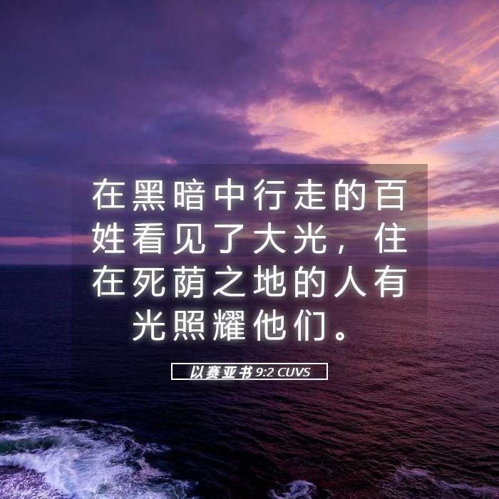 - 以赛亚书 9:2:“在黑暗中行走的百姓,看见了大光;住在死荫之地的人,有光照耀他们。”