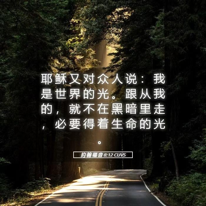 - 约翰福音 8:12:“耶稣又对众人说:‘我是世界的光。跟从我的,就不在黑暗里走,必要得着生命的光。’”