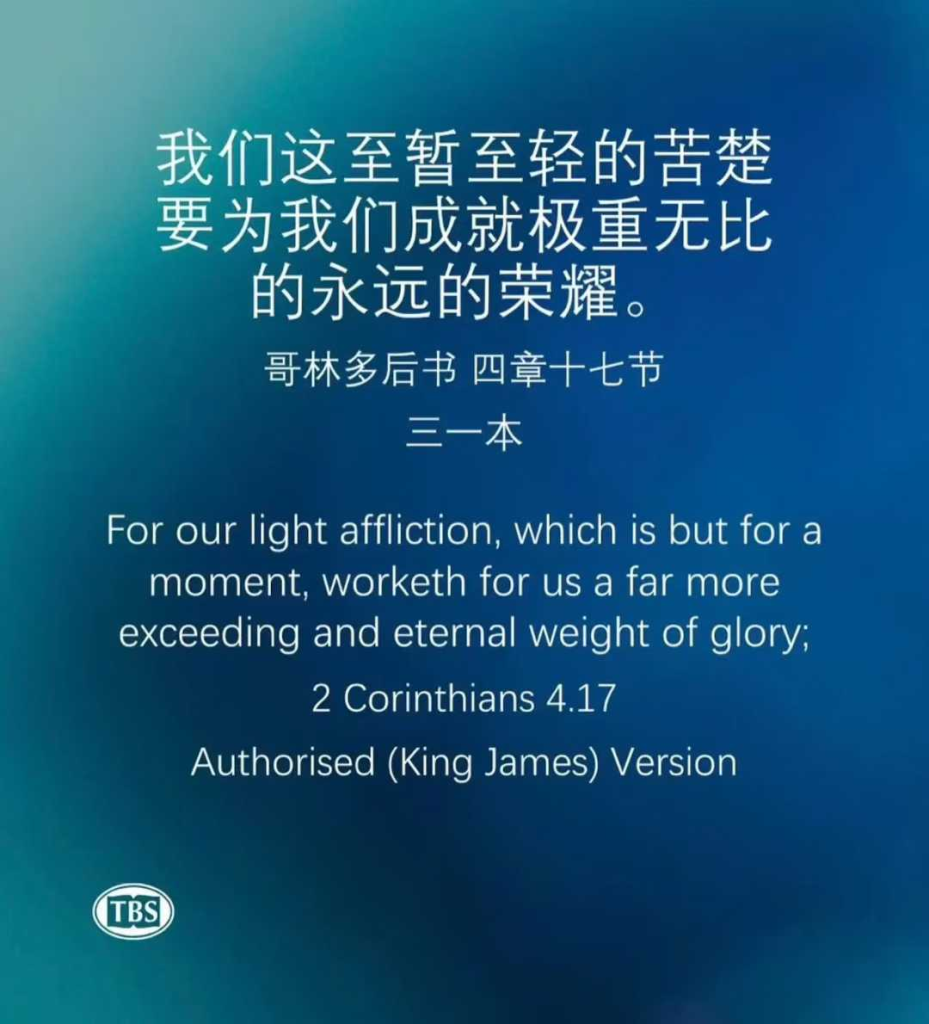 因此我们不丧胆。即使我们外在的人渐渐衰朽,我们内在的人还是日日被更新。 原来我们这暂时、轻微的患难,正为我们带来极重无比、永恒的荣耀。 ( 哥林多后书 4:16-17 标准译本 )