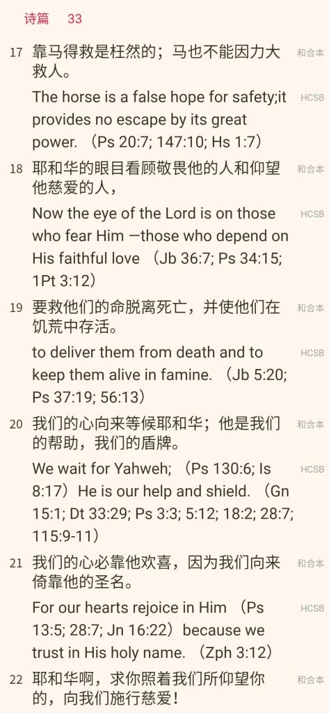 The horse is a false hope for safety;it provides no escape by its great power. (Ps 20:7; 147:10; Hs 1:7)(诗篇 33:17 HCSB)