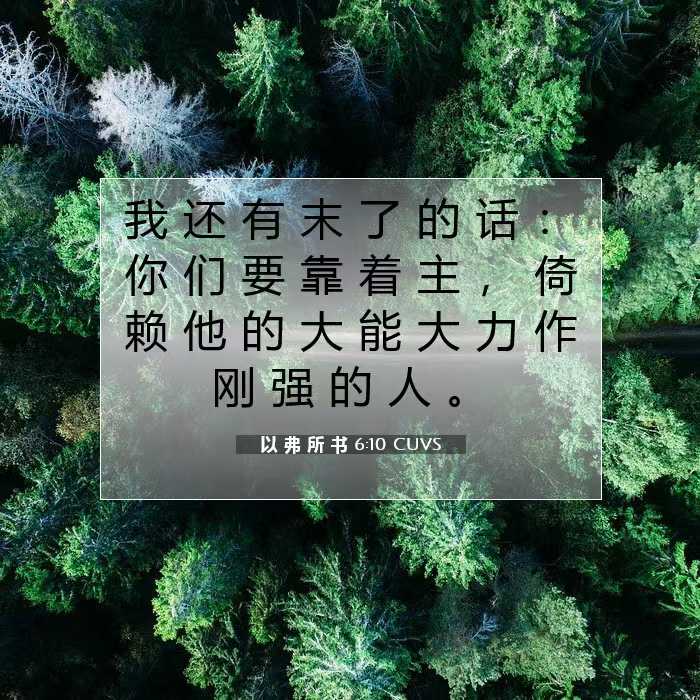 ​最后,你们要在主里藉着他力量的权能得以刚强。 ( 以弗所书 6:10 标准译本 )