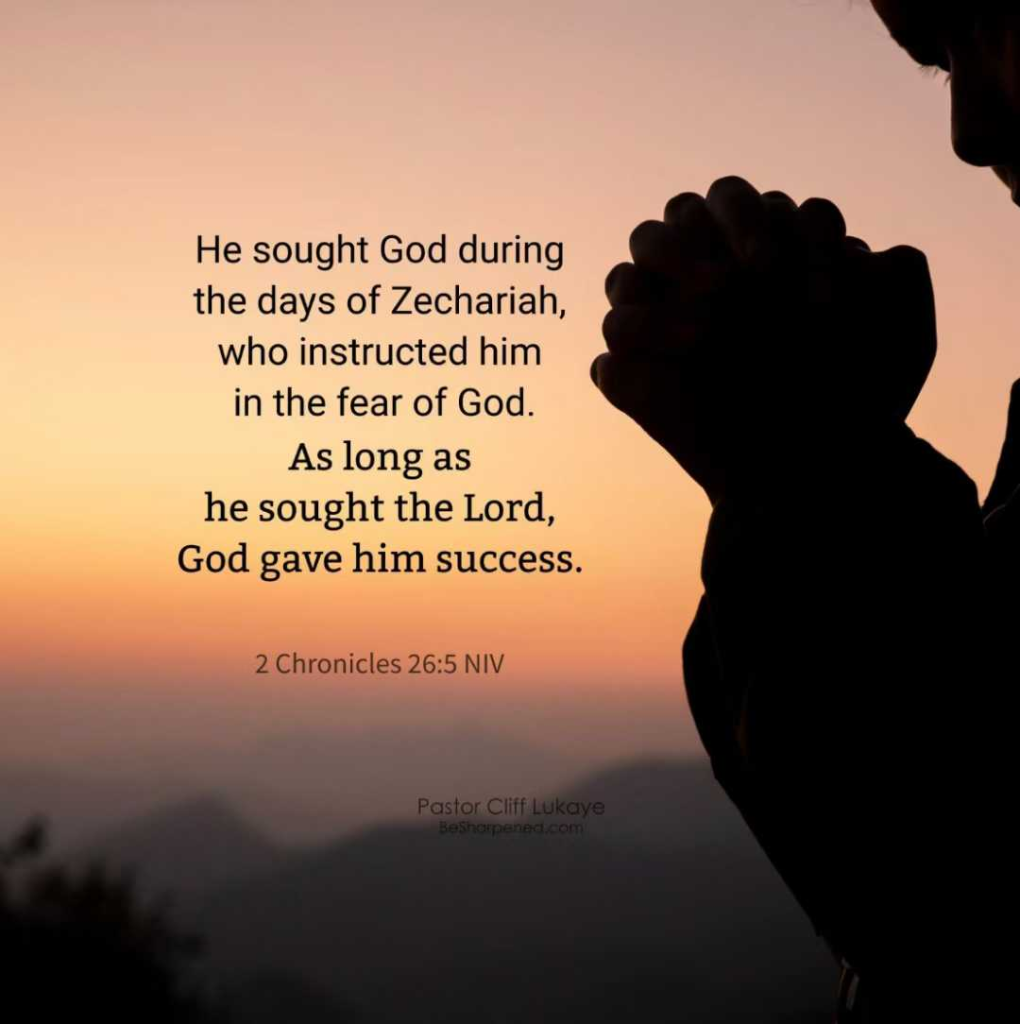 He sought God in the days of Zechariah, who had understanding in the visions of God; and as long as he sought the LORD , God made him prosper.( 2 Chronicles 26:5 NKJV )